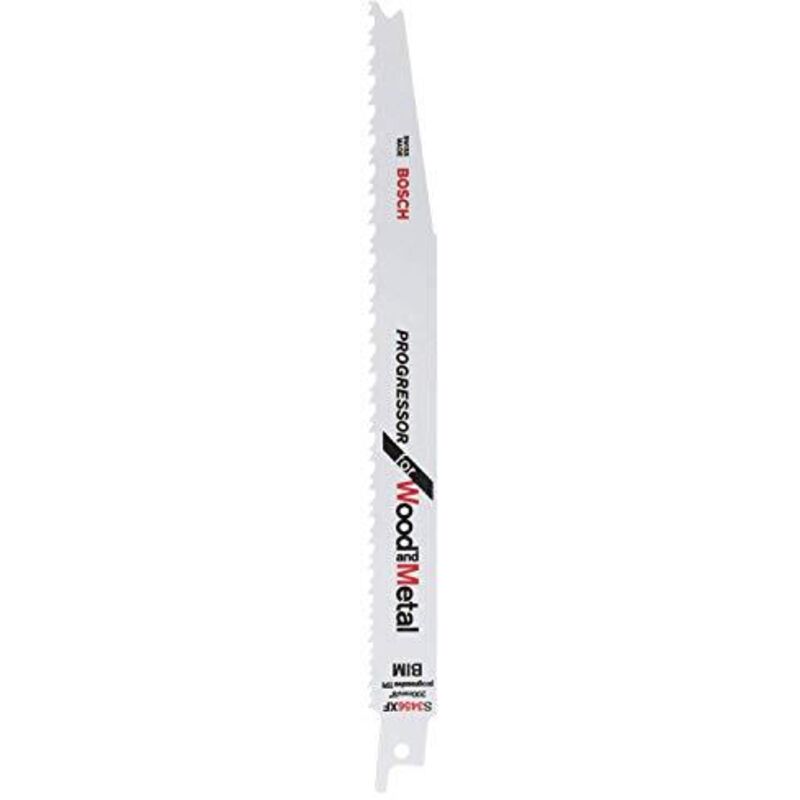 Lama a sciabola S 3456 XF. Progressor per legno e metallo. Materiale: BIM. Esecuzione dei denti: limitata · macinato. Aree di applicazione: Per legno con chiodi/metallo · Truciolato (di spessore inferiore a 150 mm) · per lamiere · Profili in alluminio (da 3 a 18 mm di spessore) · per GRP/epossidico (meno di 150 mm di spessore). Contenuto dell'imballaggio di vendita: 25 pezzi. Altre caratteristiche tecniche: · Larghezza: 19mm · Campi di applicazione: legno con chiodi/metallo, truciolato (150 mm), lamiere, profili in alluminio (3-18 mm), GRP/epossidico (150 mm) · St. per carta: 25 · Tipo: S 3456 XF · Versione: limitata, fresata