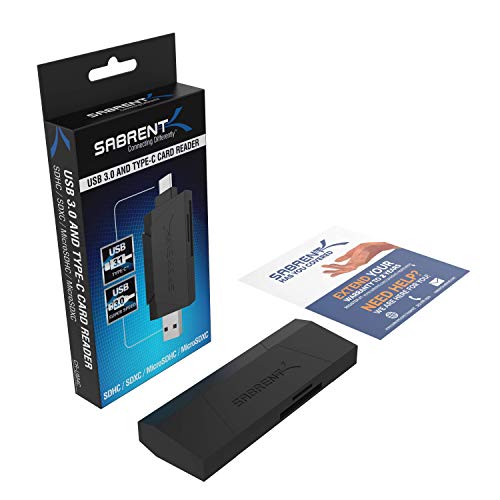 Sabrent 2-Slot Type-C OTG And USB 3.0 Flash Memory Card Reader for Windows, Mac, Linux, And Certain Android Systems - Supports SD, SDHC, SDXC, MMC/MicroSD, T-Flash [Black] (CR-UM4C)