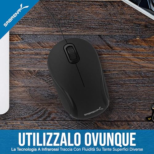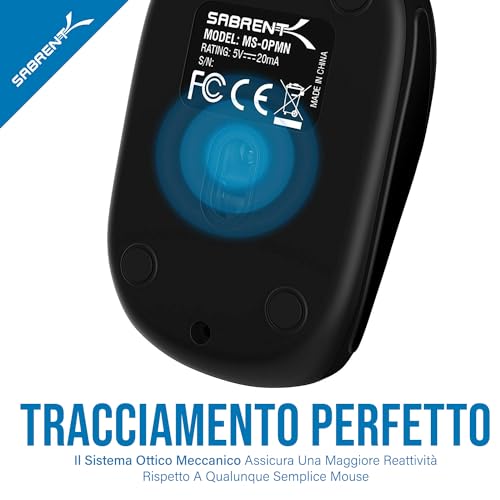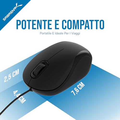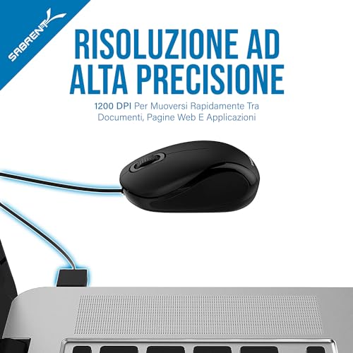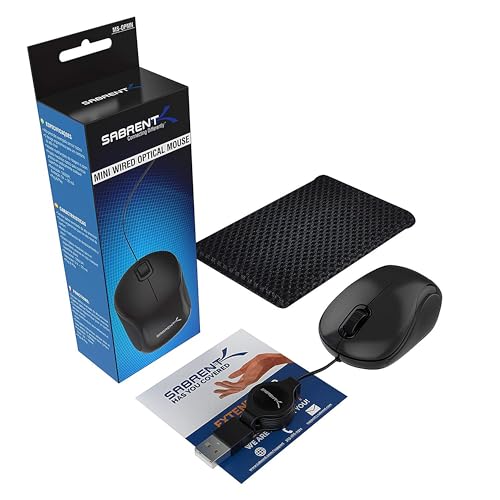 SABRENT Mouse da viaggio PC portatile, con cavo retrattile, Accessorio da viaggio (1200 dpi), per PC desktop, MAC, ideale per gli spostamenti, nero (MS-OPMN)