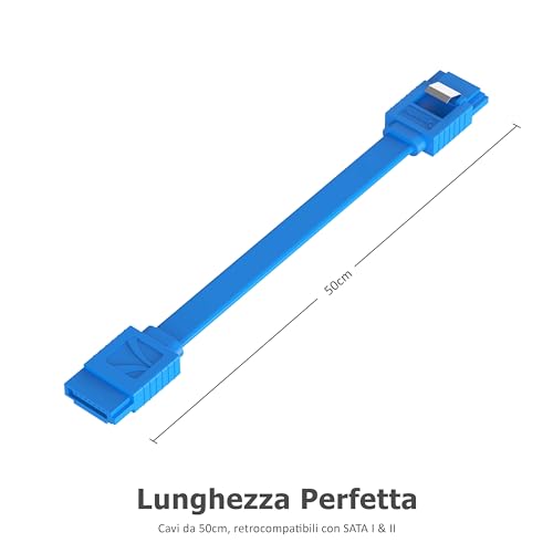 Sabrent Cavo SATA III SSD/HDD Hard Disk interno, Cavo dati SATA 3 (6 Gbit/s), Cavo SATA PC, dritto con linguetta di blocco, per drive HDD/SSD/CD/DVD (Confezione da 3-50 cm) Blu (CB-SFB3)
