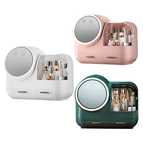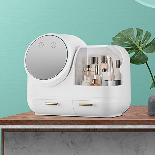 SABUIDDS Organizer per Trucchi con Specchio Girevole Organizer per Cosmetici con Luce ad LED Contenitore per Trucchi con Una Copertura Organizzatore di Bellezza per Dresser, Camera da Letto (Bianco)