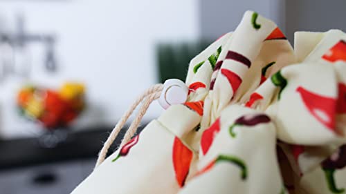 Patterned sacchetto del pane sacchetto del pane scaffale tessuto peperoni un "colore up". I suoi motivi "Peperoncini" saranno decorare, viso e illuminare la vostra cucina.