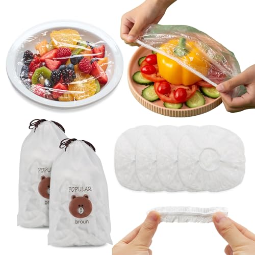 【Materiale Sicuro】: Questi involucri di plastica per alimenti sono realizzati in polietilene trasparente per uso alimentare, sicuro da usare, non facile da strappare e con una maggiore durata di conservazione. Inoltre, l'elastico garantisce una chiusura ermetica per mantenere gli alimenti freschi più a lungo.