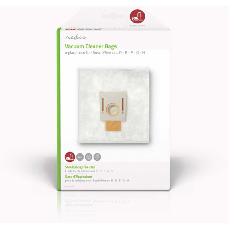 Ricambio per Bosch/Siemens D - E - F - G - H. Una confezione contiene quattro sacchetti per aspirapolvere e un microfiltro Numero di microfiltri: 1 Numero di sacchetti per aspirapolvere: 4 Adatto per aspirapolvere: Amstrad VC 201, Ariete. 4399 Impact, Bosch 10...19 Casa, Bosch 1000...1199 Casa, Bosch 1100...1199 Silence, Solida, Bosch 20 Alpha, Bosch 20...29 Natura, Bosch 21 Alpha, Bosch 210 Alpha, Bosch 221 Alpha, Bosch 24 Alpha, Bosch 2400.. .2990 Alpha, Bosch 5000...5999 Optima, Bosch 60...69 Activa, Bosch 6400...6999, Bosch 7000, Bosch BBS 1000...1099 Silence, Solida, Bosch BBS 2000...2299 Alpha, Bosch BBS 3112, Bosch BBS 3114, Bosch BBS 5000...5999, Bosch BBS 5522, Bosch BBS 5523, Bosch BBS 6000...6399 Activa, Bosch BBS 8000... 8999 Perfecta, Bosch BGL 35 MOVE6, Bosch BS 52, Bosch BS 55, Bosch BS 58, Bosch BS 6 CompactStar, Bosch BSA 0000...1999, Bosch BSA 000KA...999KA, Bosch BSA 2602, Bosch BSA 2800/02, Bosch BSA 61000...61922 Logo, Bosch BSB 2180/09, Bosch BSC 0001...9999