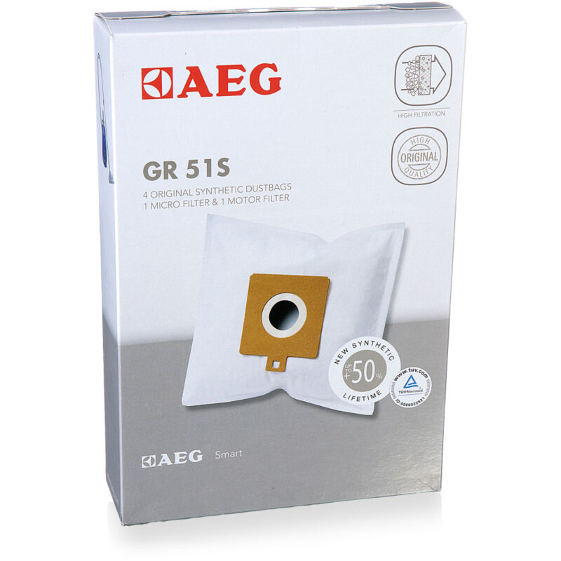 Sacchetti raccoglipolvere Aeg smart 460 GR51S Contenuto della confezione: 4 Filtro motore: 1 Microfiltro: 1 Versione: Originale