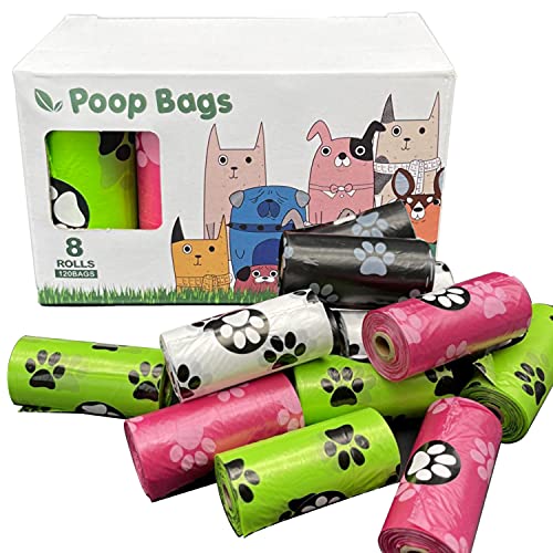 DESIGN MULTICOLORE - Ogni scatola ha 8 rotolo sacchetti biodegradabili (120 sacchetti) con 4 colori diversi e ogni sacchetto organico misura 2.7*2.7*6 cm, proprio la dimensione giusta per afferrare una cacca di animale domestico;