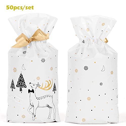 Alfx Sacchetti Per Biscotti Con Coulisse Sacchetti Di Caramelle Natalizi Con Nastro - 50 Pezzi