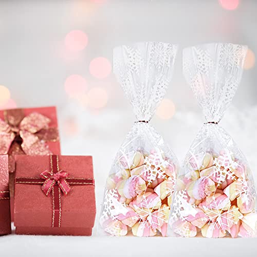 Sacchetti Biscotti di Natale, Azexcy 100 Pz Sacchetti Regalo in Cellophane Fiocchi di Neve Trasparente Sacchetti con Cravatta per Caramelle, Alimenti, Dolci, Torte
