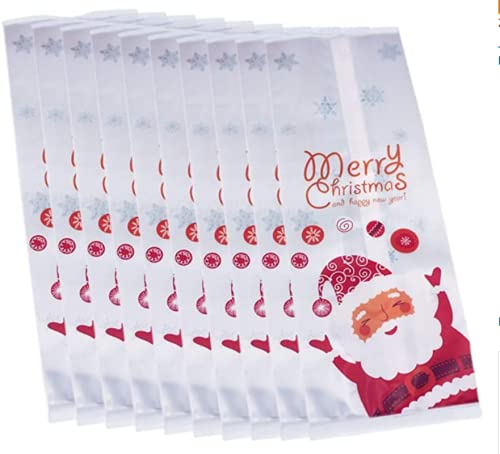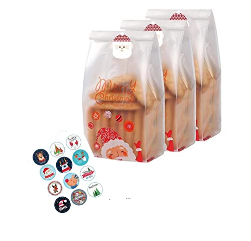 Sacchetti di biscotti di Natale 50 pezzi sacchetti per regali traslucidi con adesivi Sacchetti di plastica di Babbo Natale per torta Caramelle