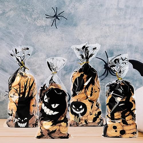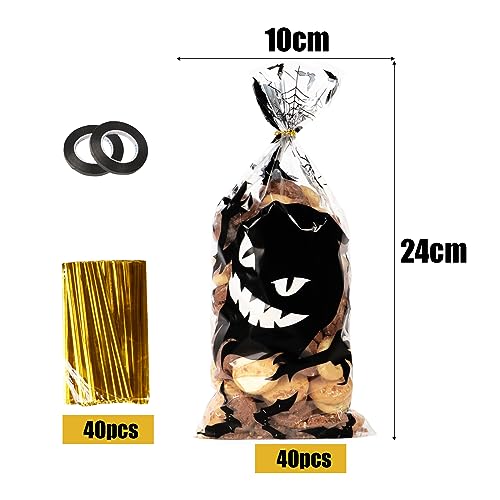 40pz Sacchetti di Caramelle Halloween Bustine Cellophane OPP per Dolcetti Biscotti Dolci di Festa Halloween Party Sacchetti Trasparenti Plastica Regalo Halloween Decorazioni (Nero)