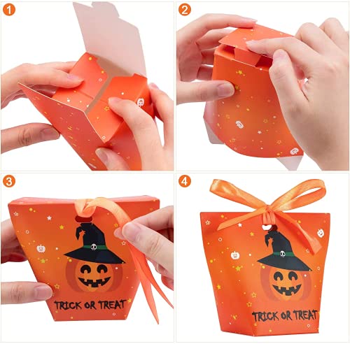 Dimensioni perfette e facile da usare: ogni pezzo di borsa per dolcetti di Halloween ha una dimensione di 10 x 6 x 12 cm / 4 x 2,4 x 4,7 pollici, ideale per avvolgere dolcetti e bomboniere, basta semplicemente installarlo come mostra la nostra immagine e poi mettere le caramelle, biscotti o piccoli regali all'interno.