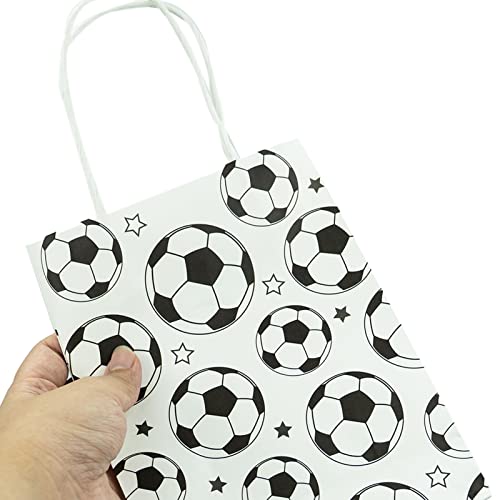 12 sacchetti di carta da calcio per spuntini da calcio, con manici per feste di calcio, borse per feste di calcio, per ragazzi, ragazze, feste a tema, forniture di compleanno (modello classico)