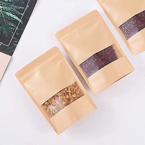 100 Sacchetti Carta Kraft con Finestra: Riceverete 100 sacchetti regalo con una dimensione di 9x14 cm. È possibile inserire tutti i tipi di noci, caramelle, chicchi di caffè, ecc in questi sacchetti kraft con finestra, quantità sufficiente per le vostre varie esigenze di conservazione degli alimenti.