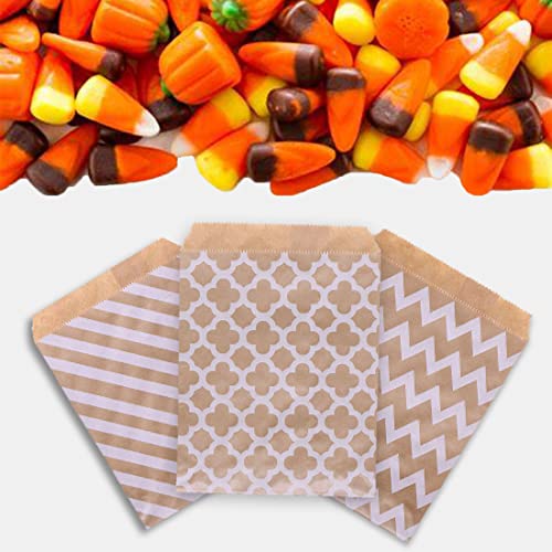 DIMENSIONE: Il sacchetto di carta misura 13 cm x 18 cm (5,1 x 7,1 pollici). Ogni confezione contiene 100 sacchetti di carta kraft in cinque stili. Ottimo per distribuire bomboniere.