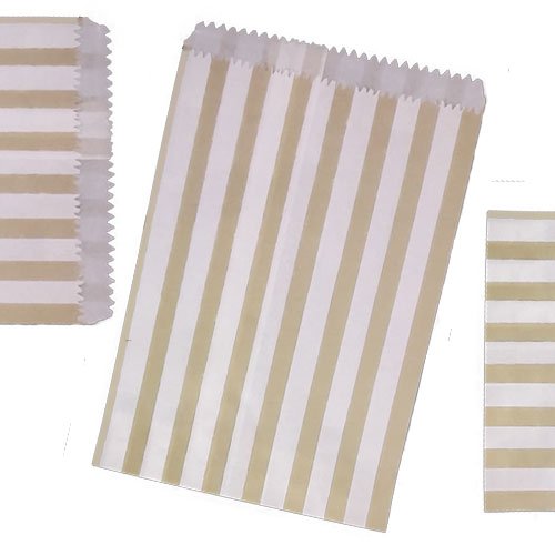 100 Sacchetti di carta a righe porta-confetti Buffet Wedding regalo negozio feste dolcetti jeejaan, Gold, 7" x 9"