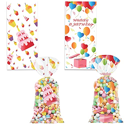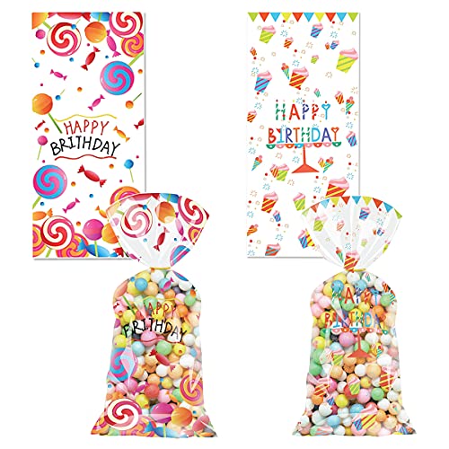 【Materiale】 - Il sacchetto di caramelle di cellophane di compleanno è realizzato in plastica OPP, inodore, non tossico, sicuro, resistente e non facile da rompere.