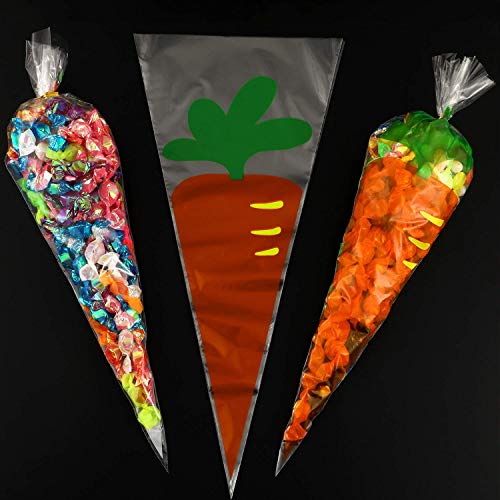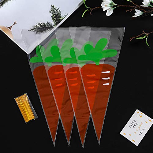 Byou Sacchetti di Cellophane,Sacchetti di Caramelle 100 Pezzi Trasparente Carota di Pasqua Modellata con Legami d'oro per Pasqua Caramelle Cookie Popc Stoccaggio
