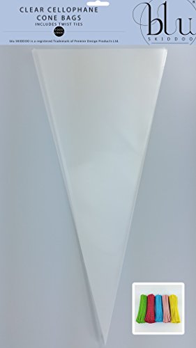 Sacchetti di cellophane trasparente a forma di cono, con lacci blu, Skiddoo (TM) Assorted Twist Ties
