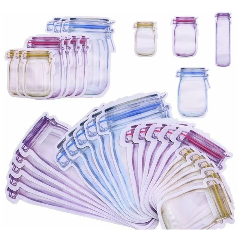 Colore come mostrato Dimensioni: 33 x 19 x 2,4 cm Peso: 180 grammi 【Forma della bottiglia di vetro】La sigillatura del bordo è liscia, l'intricato design rotondo non taglia la mano, è bello e versatile, aggiungendo colore alla vita. Set da 20, quando metti il cibo in questi sacchetti trasparenti, scoprirai che i loro colori sono così belli. La tua cucina non sarà più noiosa ma piena di colori. 【Resistente all'umidità e al fresco】 Una buona tenuta all'aria consente di conservare vari prodotti secchi come farina, spezie, tè e chicchi di caffè. Puoi anche usarli come barattoli di caramelle per conservare zucchero, biscotti e alcuni snack. 【Striscia di tenuta addensata】 La striscia di tenuta è comoda da sigillare e la striscia di tenuta multistrato rende la tenuta più forte, senza perdite di aria o acqua e può essere riutilizzata. 【Materiali di alta qualità】Realizzati in plastica PE di alta qualità per uso alimentare, sicuri e sani, leggeri e trasparenti. Puoi vedere chiaramente tutti gli