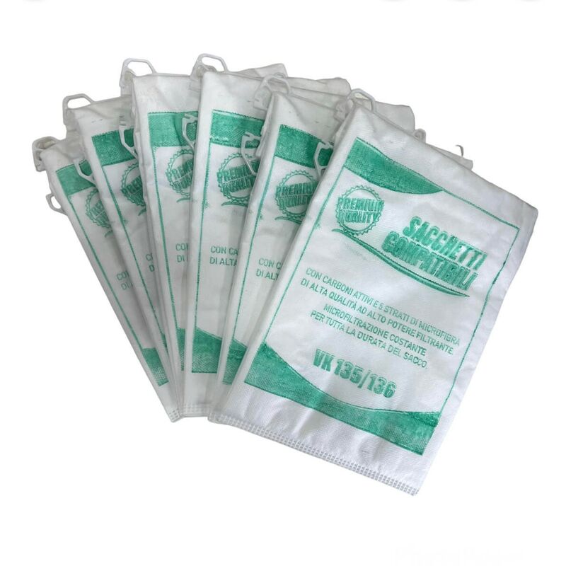 Sacchetti Compatibili per Vorwerk Folletto VK135 VK136 (6 PZ) Prodotto certificato di qualità elevata . Spedizione in tutta Italia in sole 24/48 ore lavorative. Per qualunque informazione non esiti a contattarci.