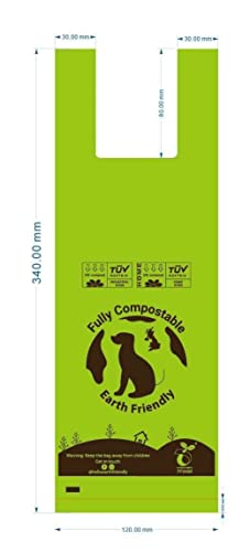 Sacchetti completamente compostabili - Extra spessi e con manici - 270 sacchetti per scatola, 18 rotoli con 15 sacchetti per rotolo - certificato 'EN13432' e 'OK compost' - Earth Friendly