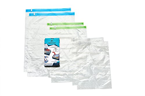 Contenuto della confezione: ricevete un set di sacchetti sottovuoto da 2 x 50 x 70 cm, 2 x 40 x 60 cm, 2 x 35 x 50 cm, così avrete sempre la dimensione perfetta a portata di mano. Sia che si tratti di un set da viaggio in aereo, valigie o anche come accessorio ideale per le vacanze.