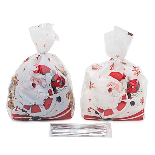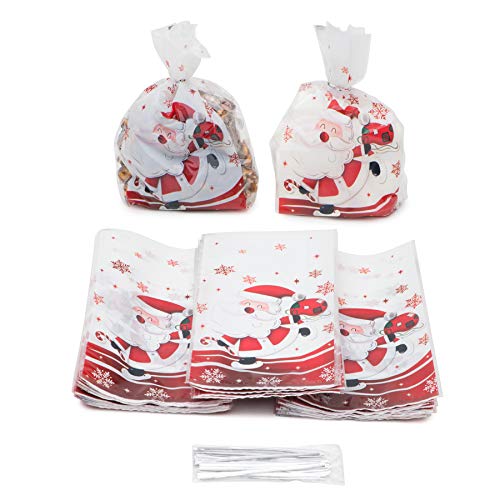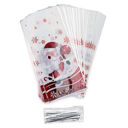 Sacchetti per dolcetti natalizi in cellophane - Confezione da 50 pezzi formato 25 x 13 x 5cm Design Babbo Natale -Confezione per bomboniere -Confezione regalo in cellophane per dolci