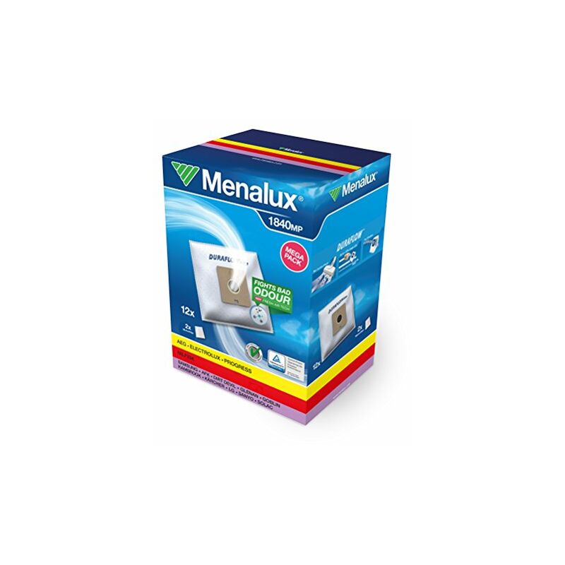 Menalux 1840 MP Mega Pack, 12 sacchetti Duraflow Sintetico, 2 filtri motore, compatibile anche con per aspirapolvere AEG, Dirt Devil, Hanseatic, Privileg, Samsung