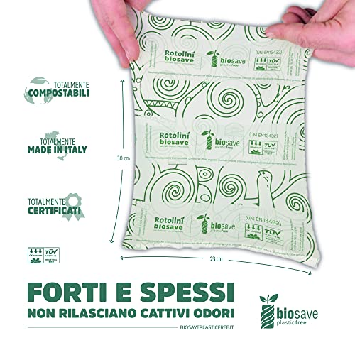 FORTI RESISTENTI E NON RILASCIANO CATTIVI ODORI: I sacchetti compostabili dei Rotolini Biosave misurano 23x30 circa e sono molto resistenti perché hanno uno spessore di 17 my, sono facili da utilizzare e contengono perfettamente la cacca del tuo cane senza nessuna fuoriuscita. La misura del rotolino è ideale per il tuo portasacchetti da guinzaglio preferito.