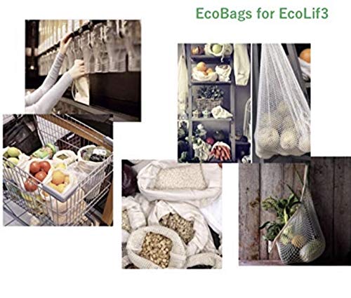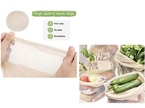 Sacchetti per Frutta e Verdura | Borse Riutilizzabili per Alimenti in Cotone Organico | Produce Reusable Bags Biodegradabili, Lavabili | 6 PCS (2S, 1M, 1L, 1XL, 1 shopper)