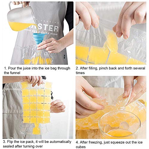 Sacchetti di Ghiaccio USA e Getta,Sacchetti per cubetti di Ghiaccio + Imbuto in Silicone.Preparazione di Ghiaccio per Bevande(100 pz)