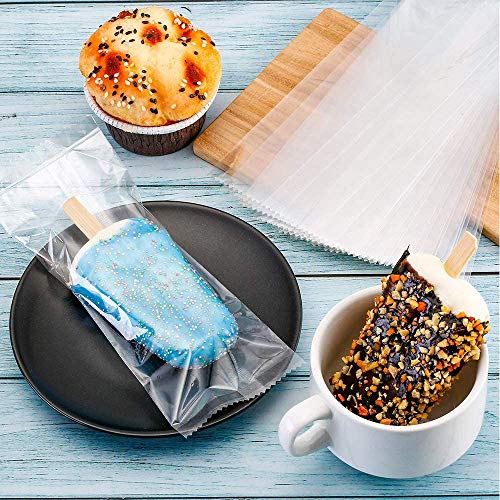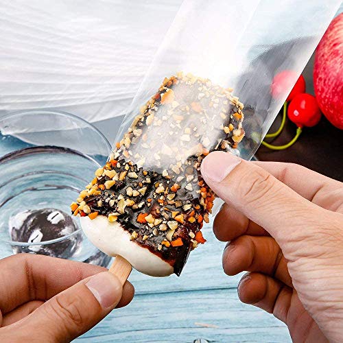 La confezione include: 100 sacchetti di plastica Ice Pop. Dimensioni: S-7,4 x 3,8 cm, L - 7,5 x 4,7 cm, ottimo accessorio decorativo per matrimoni, feste di compleanno, cake pop, lecca-lecca, caramelle, abbastanza per l'uso.