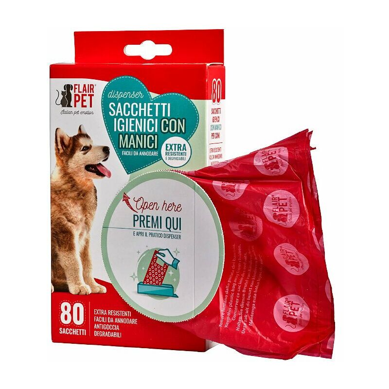 SACCHETTI IGIENICI CON MANICI IN DISPENSER Pratico e comodo, questo dispenser da 80 sacchetti igienici con manici è. particolarmente utile e da tenere sempre a portata di mano. I sacchetti sono extra resistenti e degradabili, sono anche antigoccia e facili da annodare grazie ai manici con cui sono realizzati. Ottimi per la raccolta feci degli animali, sono facili da estrarre proprio grazie al dispenser che oltretutto li tiene anche in ordine.