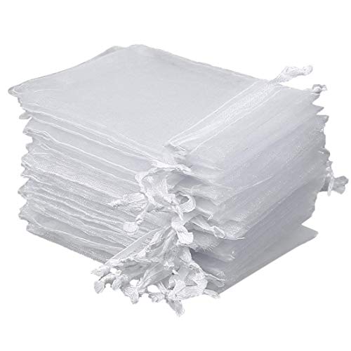 Sacchetti Organza,100 Pezzi Sacchetti Piccolini Borsa Bomboniera Regali Gioielli per Confetti Matrimonio Natale Anniversario Báisè Bianco 9x12CM