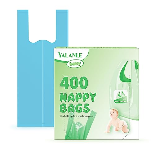 Sacchetti per pannolini usa e getta per bambini, 100% compostabili, biodegradabili, con manici Easy-Tie, adatti per il bidone dell'umido (400 pezzi)