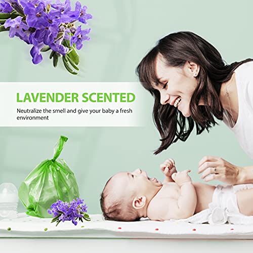 Al profumo di lavanda: sacchetti per pannolini per bambini con un leggero profumo di lavanda per aiutare a eliminare gli odori, pratici per raccogliere pannolini, residui di cibo, escrementi di cane e scarti della lettiera per gatti, a prova di perdite, senza cattivi odori.