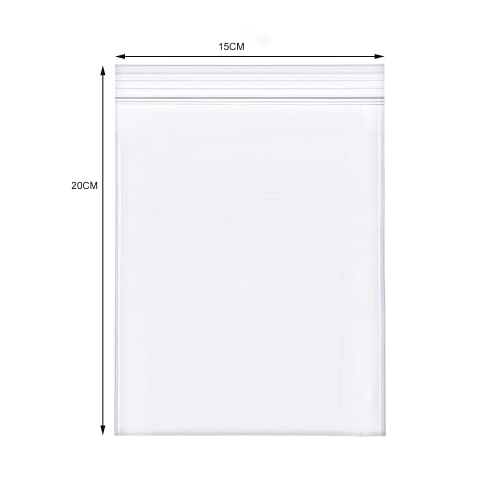 100 Sacchetti in plastica Trasparente risigillabili,Borsa con Chiusura a Cerniera Rigida Riutilizzabile,Ispessimento e Resistente,premere per chiudere con Chiusura 15x20cm