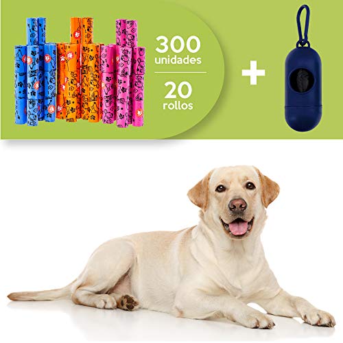 Sacchetti cane + Porta sacchetti| 300 Sacchetti |Sacchetti per cani Ecologici adatti a tutte le razze e misure Sacchetti cani Eco + portasacchetti per guinzaglio Sacchettini cani eco per bisogni