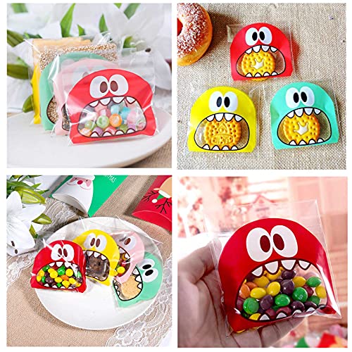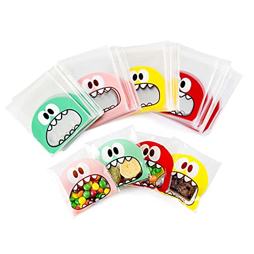 Sacchetti Regalo Autoadesivi Trasparenti Plastica Cellophane Autoadesive Sacchetti Sacchetti di Plastica Smerigliati Mostri Sacchettini Trasparenti per Caramelle Fatte in Casa,Biscotti,Cioccolatini