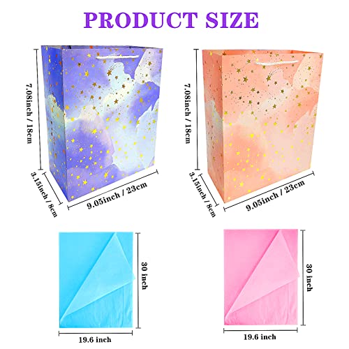 【Sacchetti Regalo Piccoli Set】Acquisto buste regalo piccoli contiene 2 confezioni di busta regalo compleanno con 4 fogli di carta velina (2 blu e 2 rosa), robuste bustine regalo colorate di compleanno, realizzate in cartone ecologico. Bello per il confezionamento di regali o per la conservazione di oggetti.
