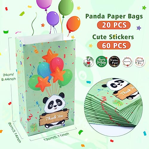 Sacchetti Regalo di Carta 20 Pezzi,Panda Bustine Regalo con 60 Adesivi per Bambini Compleanno,Festa,Celebrazione,24 * 13 * 8cm