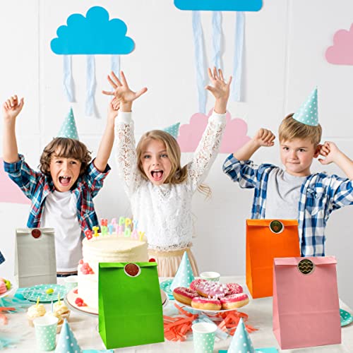 Sacchetti Regalo di Carta, 20 Pezzi Sacchettini Compleanno Bambini, 10 Colori Sacchetti di Carta di Caramelle con 48 Adesivi, Bustine Carta Borse Colorati per Bambini Compleanni, Fest