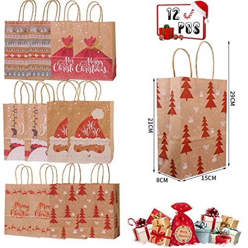 Sacchetti Regalo di Natale,12 Pezzi Buste regalo kraft Natale,Sacchetti Regalo Natalizi,Borsa Kraft con manico,per Bomboniere Feste di Natale Compleanno Feste