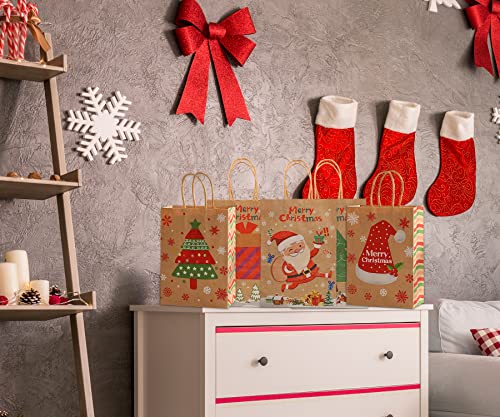 Sacchetti Regalo Natale,12 Pezzi Sacchetti Natalizi Carta Kraft Sacchetti Regalo Natale Carta con Manici Sacchetti Natalizi Sacchetti Piccoli Regalo Natale per Decorazioni Natalizie e Regali per Feste