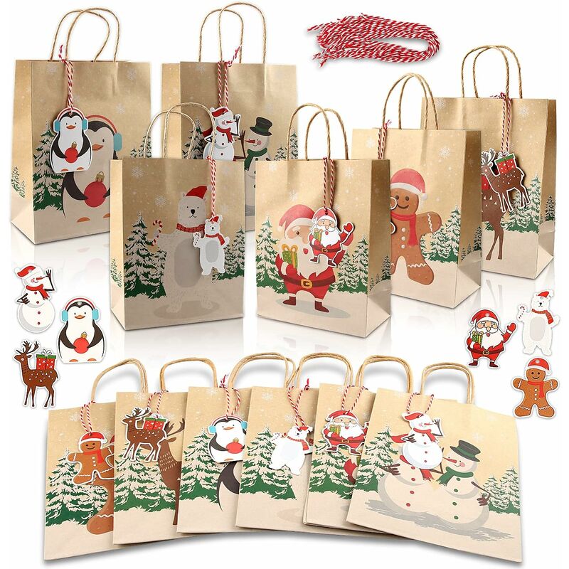 Queste borse sono utilizzate per l'intrattenimento e l'intrattenimento all'aperto. Festa di Natale. [Regalo di Natale perfetto]: i sacchetti regalo con stringhe e etichette sono più belli e molto utili per incartare i regali di Natale. l. [qualità eccellente]: la borsa regalo di alta qualità è comoda per l'imballaggio natalizio e la borsa robusta e resistente è abbastanza stabile. [ben fatta]: la borsa modello Noel ha un bell'aspetto, con un design e un motivo accattivanti. La stampa è buona, i motivi sono belli, le etichette e i cordoncini abbinati sono carini, tutto è perfetto. [spazioso, grande capacità]: la dimensione della borsa di Natale è bella e comoda: 18*9*31,2 cm (compresa la borsetta da 8,5 cm) cm, può contenere molti regali come piccoli calzini, libri, cioccolata e sapone.