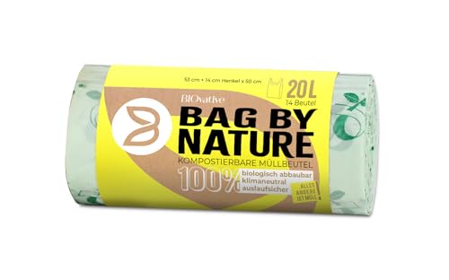Sacchetti per rifiuti biodegradabili da 20L con maniglia: 56 pezzi, Made in Germany, resistenti allo strappo, 100% compostabili in meno di 6 settimane, CO2 neutrale, disponibili anche da 6L, 10L, 30L