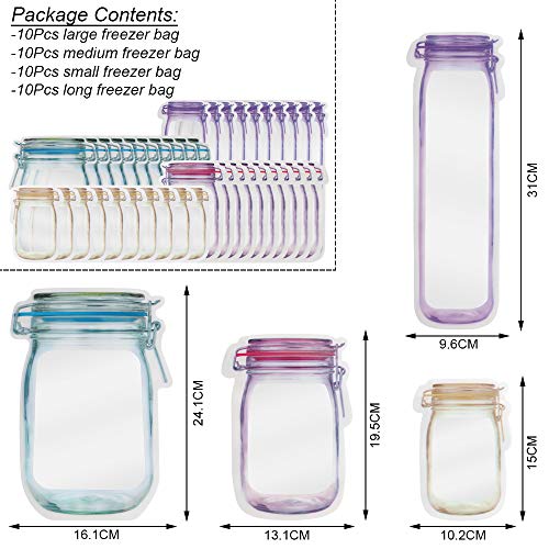 Sacchetti Riutilizzabili per Alimenti, Sacchetti Chiusura Zip, Borse con Cerniera Mason Jar Borsa, Tenuta Ermetiche Sacchetto, Bustine Trasparenti con Zip-Sacchetti per Frutta,Verdura, Spuntini (40)