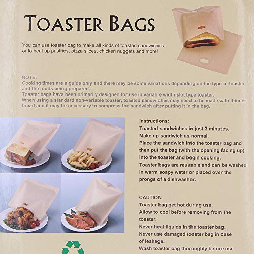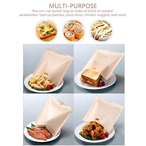 Materiale: questi sacchetti per toast sono realizzati in fibra di vetro adatta ad uso alimentare e politetrafluoroetilene, resistenza al calore convenzionale da -70°C e 260°C, sicuri e atossici.