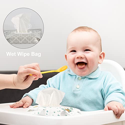 4 sacchetti per salviette umide con coperchio a ribalta e chiusura a linguetta, riutilizzabili, per salviette umide, dispenser di salviette per bambini, ecologiche, portatili