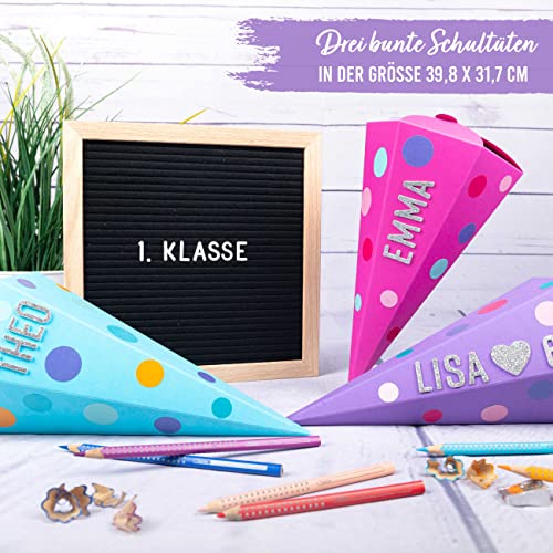 Contenuto della confezione: set di 3 sacchetti di zucchero per fratelli nei colori turchese, viola e rosa. Le dimensioni dei sacchetti per la scuola sono di 39,8 x 31,7 cm